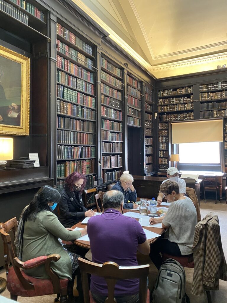 Meha Hindocha, a local artist, collaborates with a diverse group of The Portico Library users and members (Thai, Persian, Indian, Spanish, English, and Scottish) to create a series of collages in response to the library’s 450-year-rich history collection.