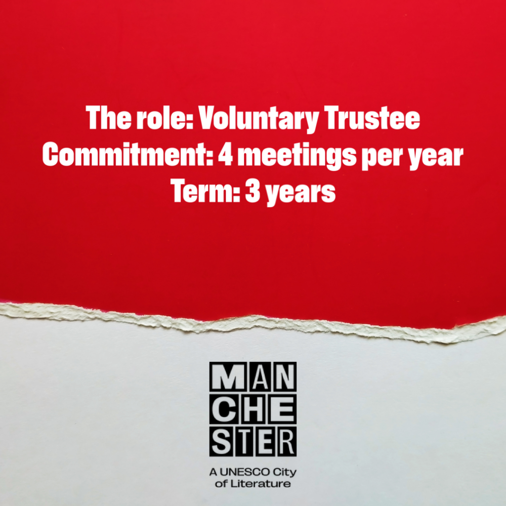 Manchester City Of Literature is seeking Trustees to join the Board and to ensure the UNESCO designation celebrates the diverse range of voices in Manchester and is truly owned by the city at large.