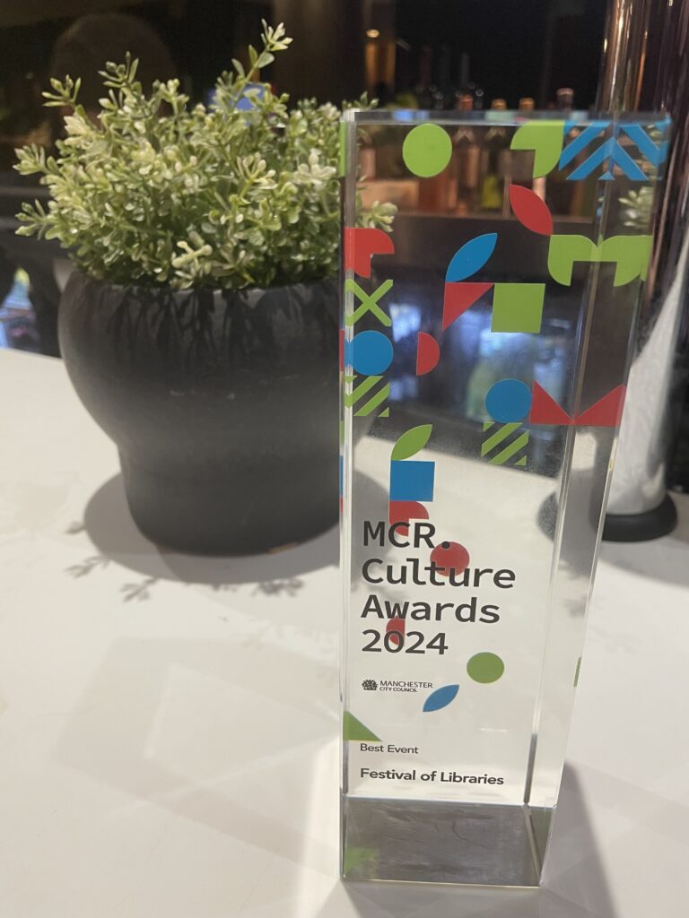 Festival of Libraries has scooped a prestigious Manchester Culture Award in the Best Event category. The Festival is funded by Arts Council England and enjoys the support and collaboration of authors, artists and creatives, who all believe in the vital community and cultural role of libraries.