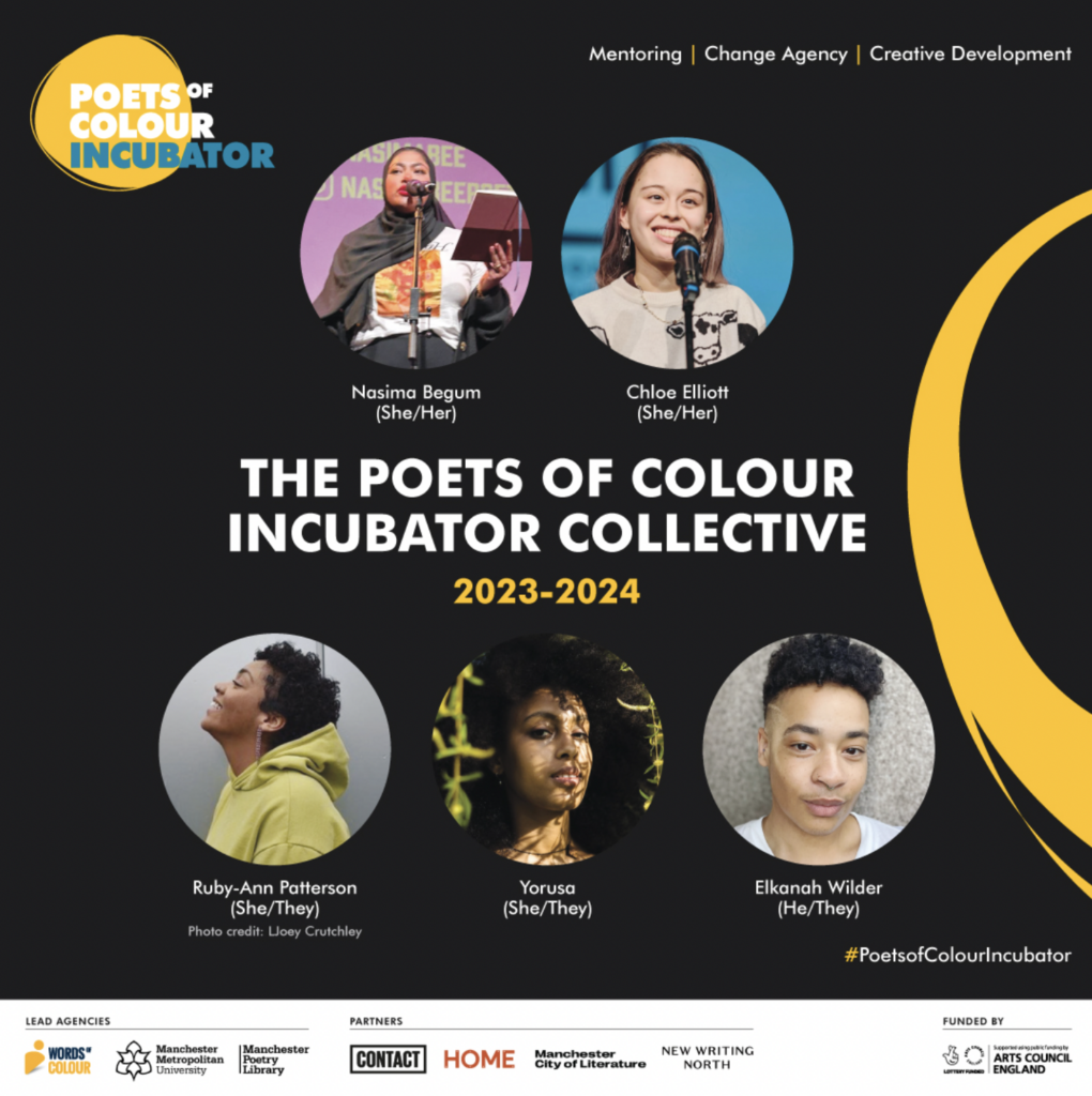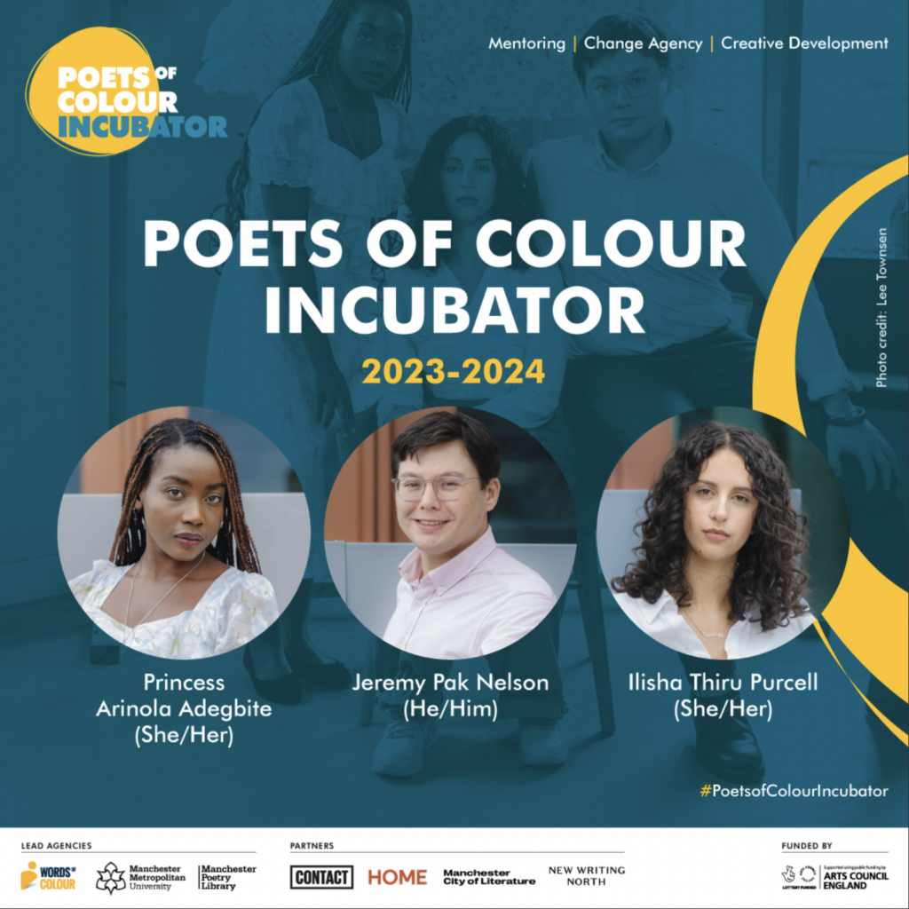 Supported by partners, including Contact, HOME, Manchester City of Literature and New Writing North, each Incubator poet will have the chance to work with students, staff and different communities in the North of England on ideas development through Incubator drop-ins and scratch performances. The Incubator programme will culminate in an end of programme showcase next Autumn.