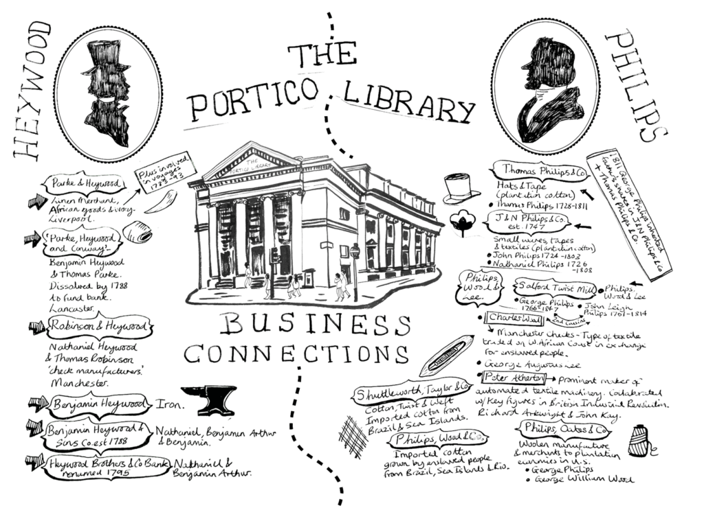 This research was commissioned as part of the Portico Reunited project, funded by the National Heritage Lottery Fund. The research was supported by Portico Library Activity Planner, Antonia Canal and Dr Matthew Stallard from UCL’s Centre for the Study of the Legacies of British Slavery and Global Threads co-lead, and the wider team of Portico staff and volunteers. Infographics by artist / illustrator Alison Erika Forde.