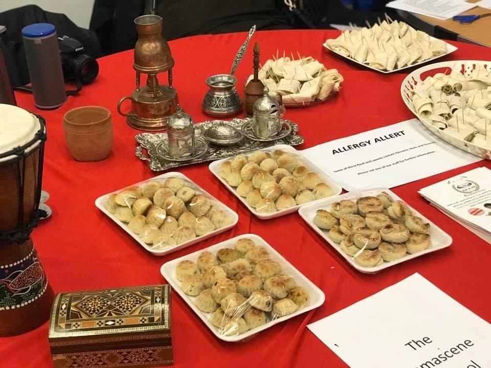 We tried to express ourselves and our culture through the type of our participation; gratefully Manchester Central Library provided us with coloured papers, colours, glue and other materials for some handcrafts. We brought some delicious Syrian sweets and some traditional objects for a small exhibition.