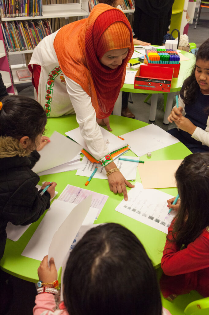 This was the first year that Longsight Library celebrated International Mother Language Day. The idea came up through connecting with the Greater Manchester Bangladeshi Association and being introduced to Ferdousi Hoque, who ran the Bangla School. International Mother Language Day is a hugely important part of the Bangladeshi community calendar commemorating the fight for recognition of the Bangla language. The decision to showcase the Bangla Schools children and young people’s cultural in the form of dance, music and poetry was the beginning of what was to become our library’s most favourite yearly activity. It brings together all our communities local to the library in a celebration of cultural heritage. This first celebration was held in the children’s library and was a bit of a squashed affair! All future celebrations have not only grown in activities and participants but have taken over the whole library!