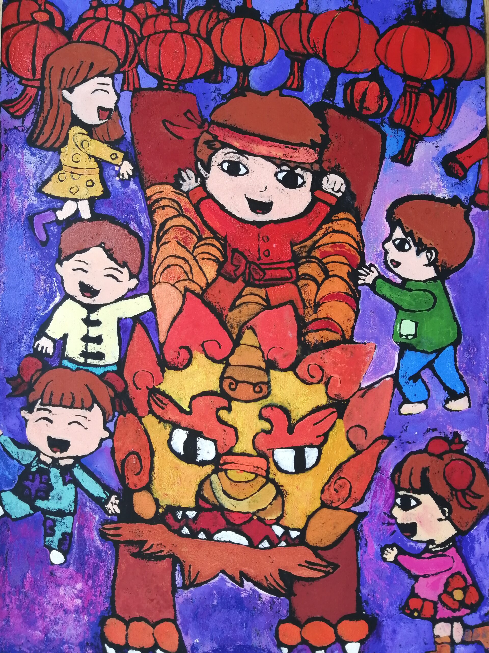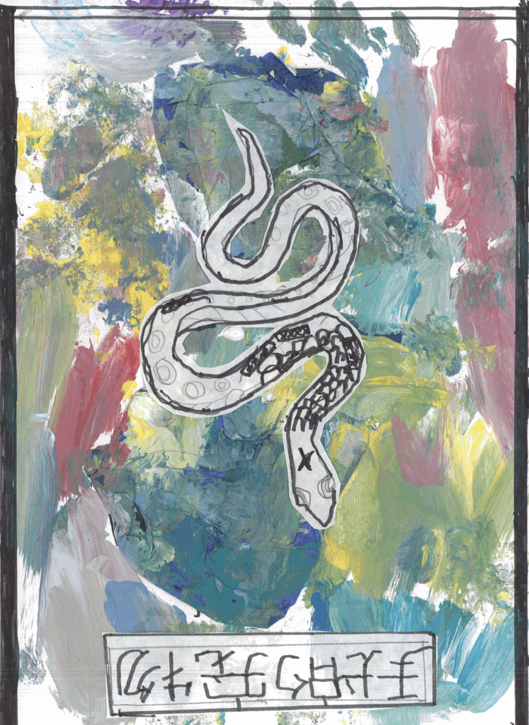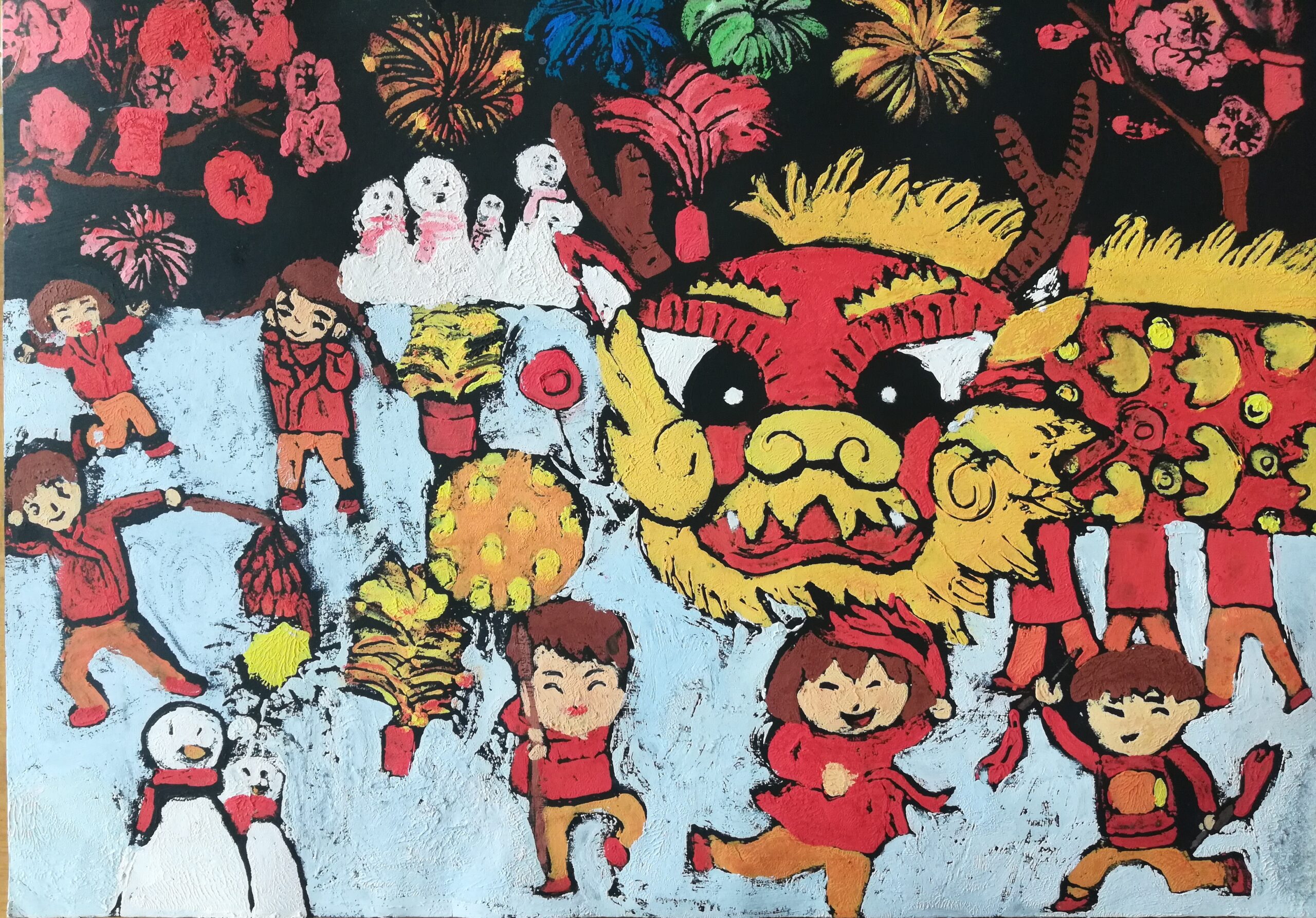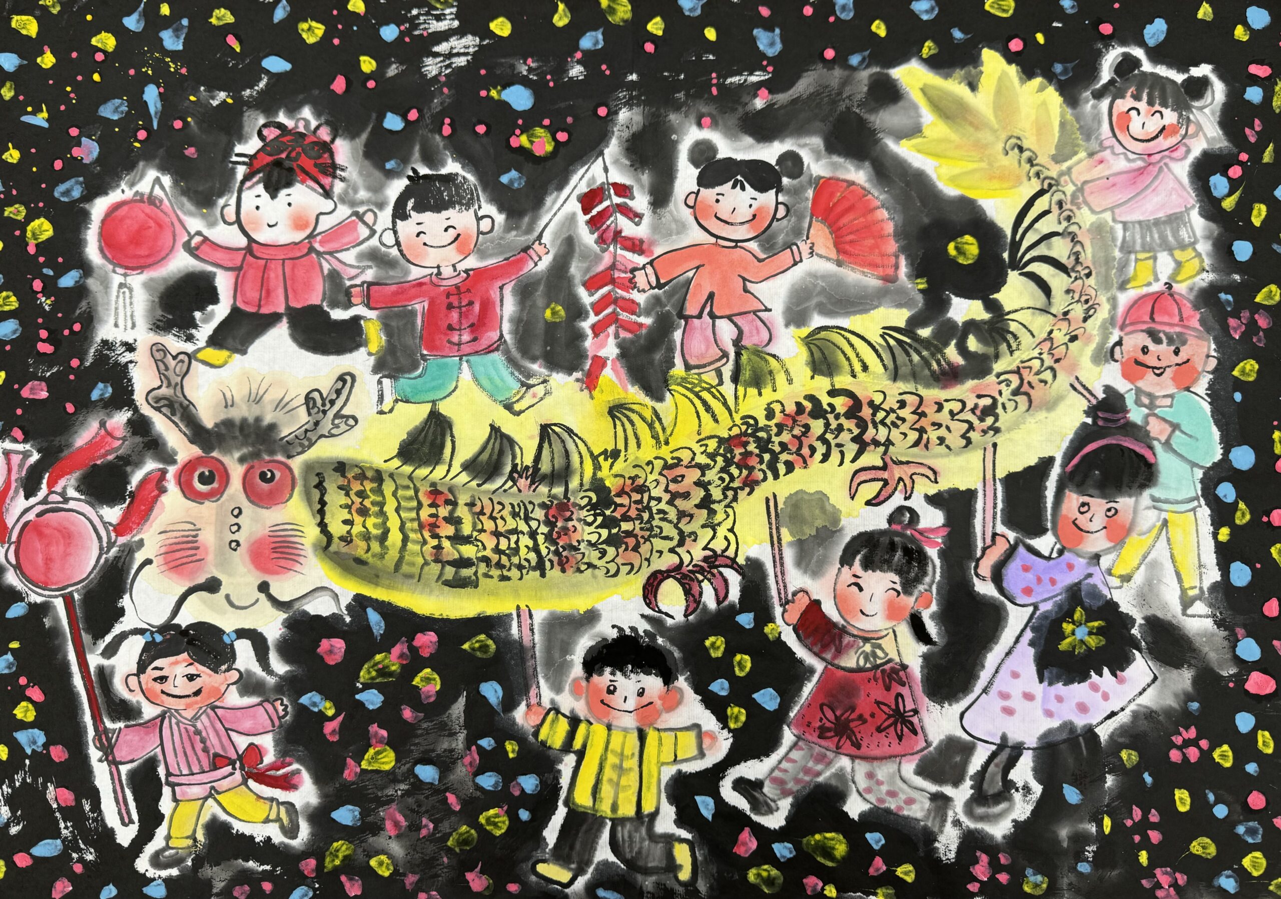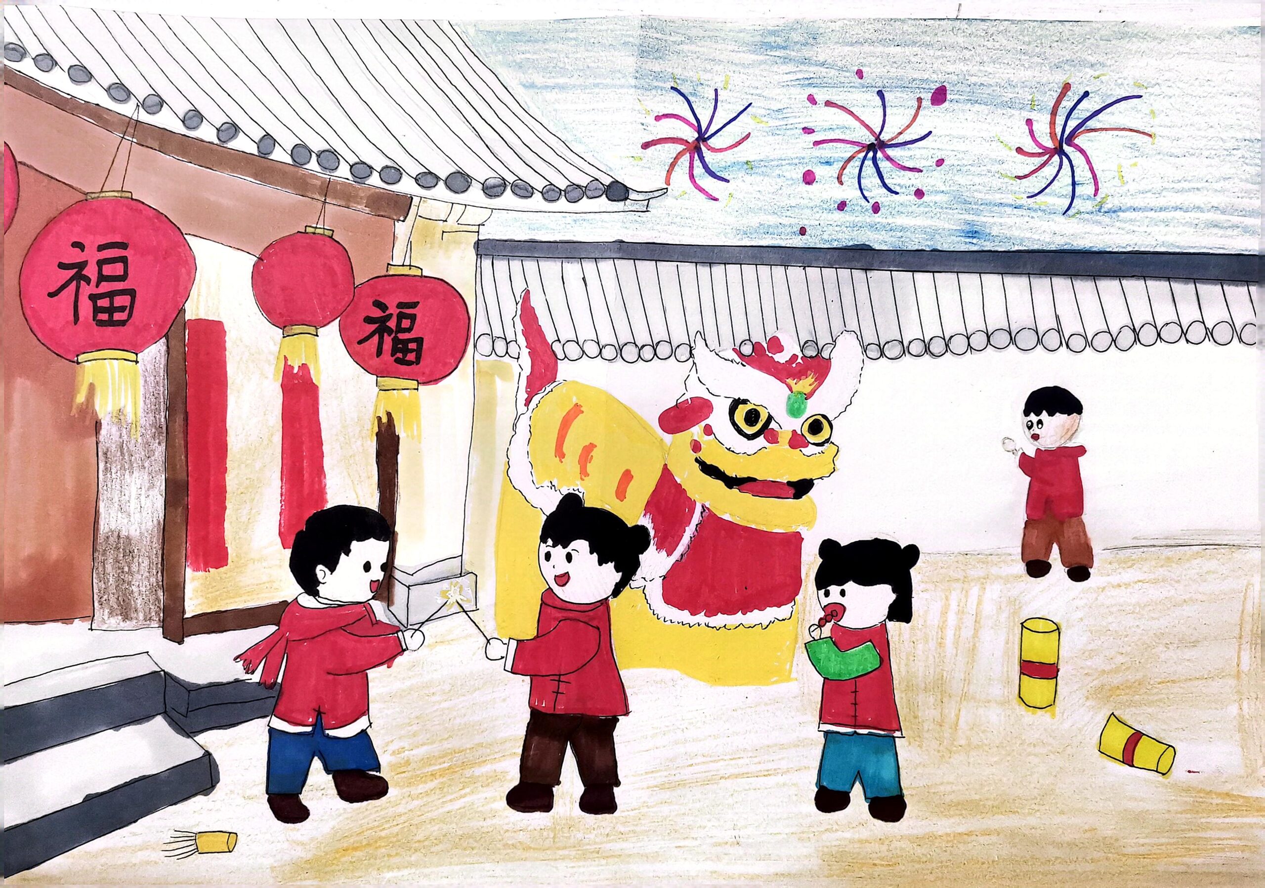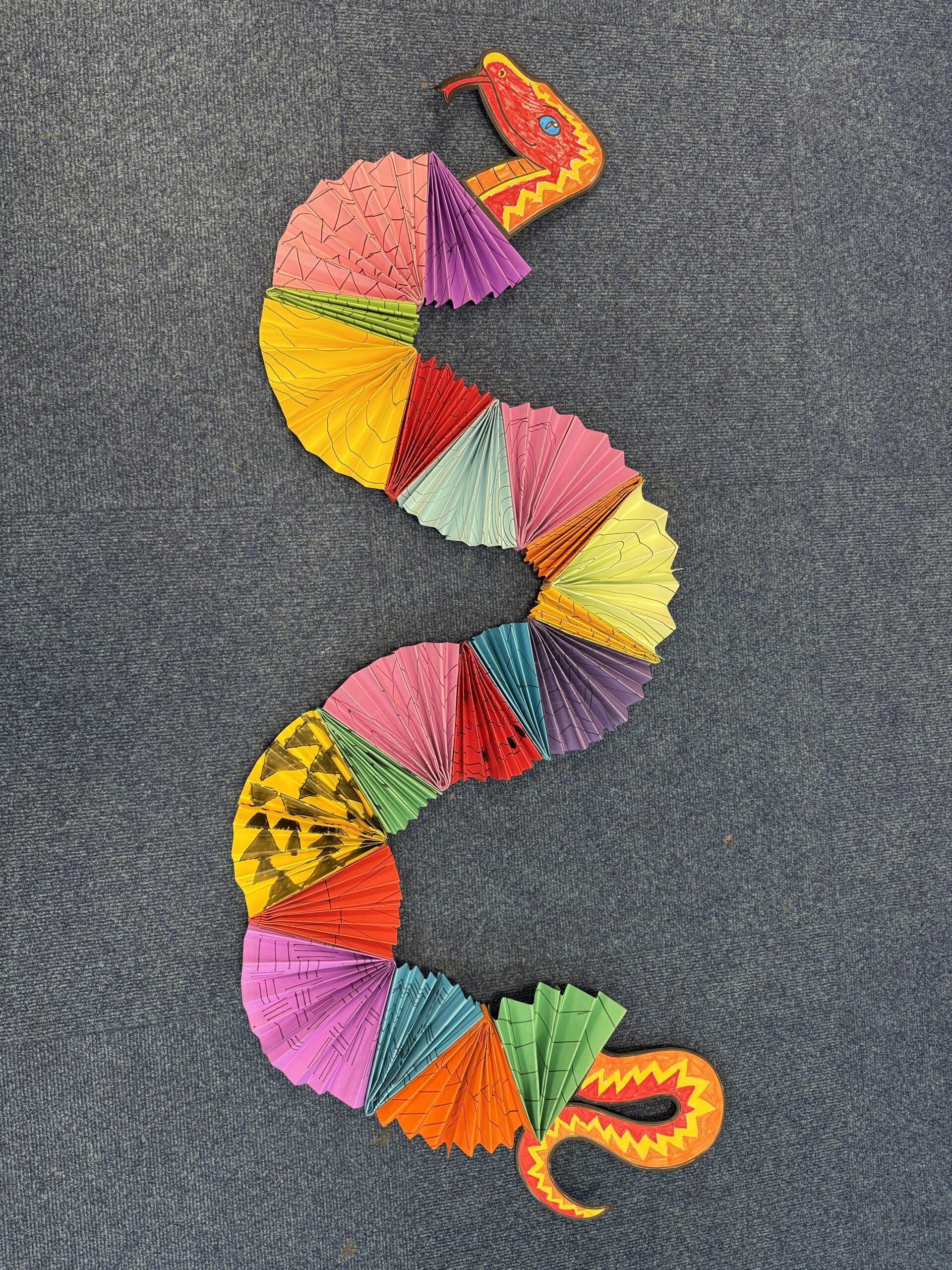 The above artwork captured on video was created by Liane Scholes, a KS2 young person in Manchester who created this piece to the theme of the ‘Year of the Snake’.
