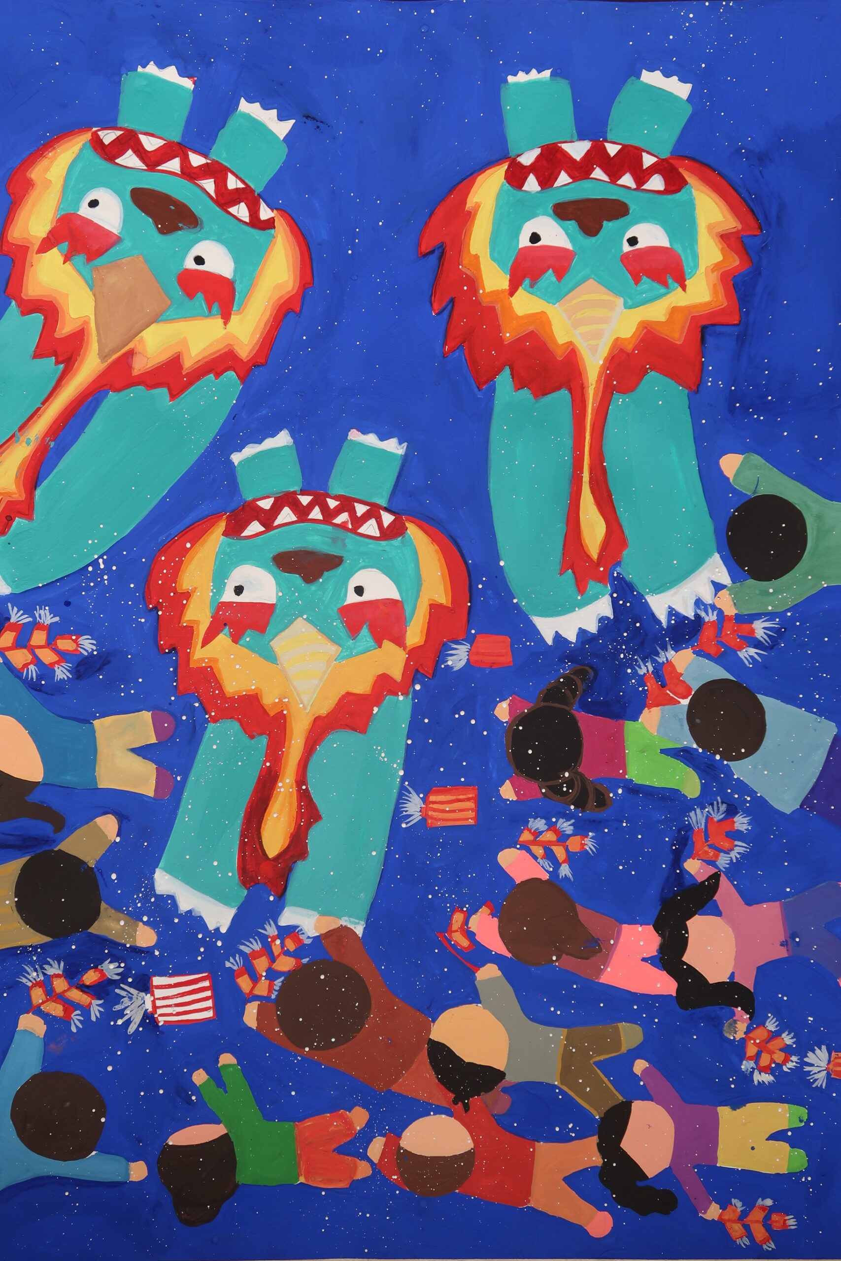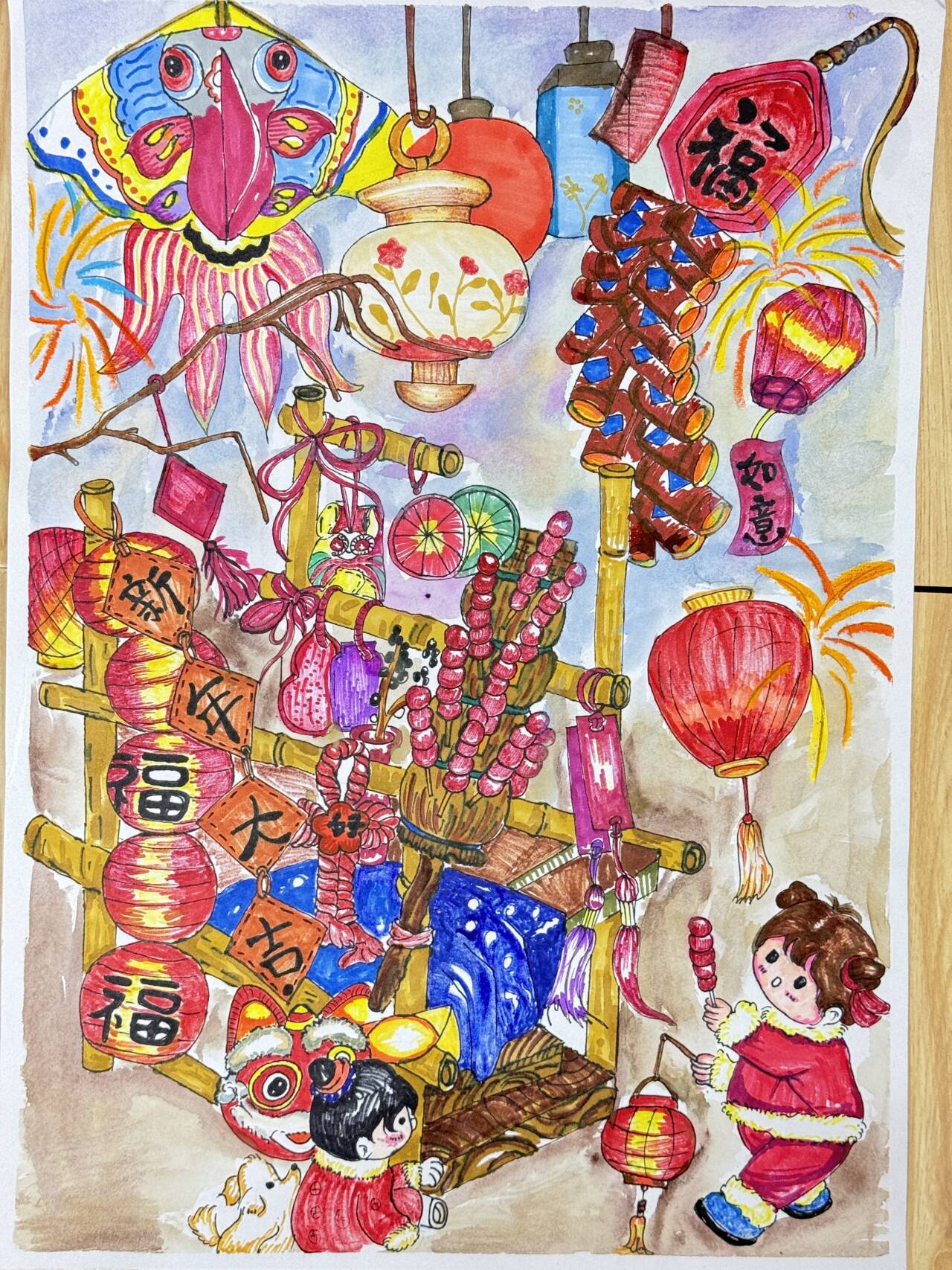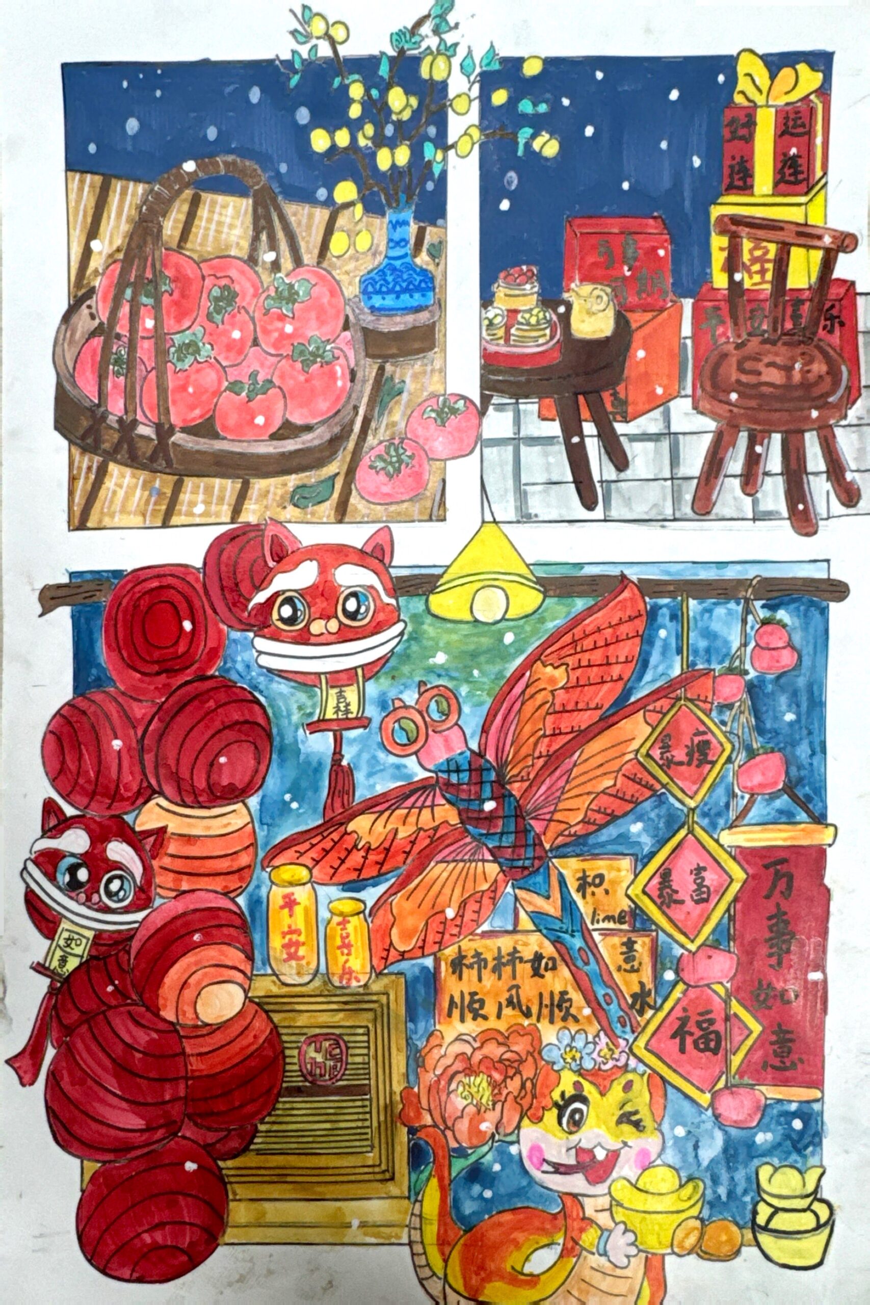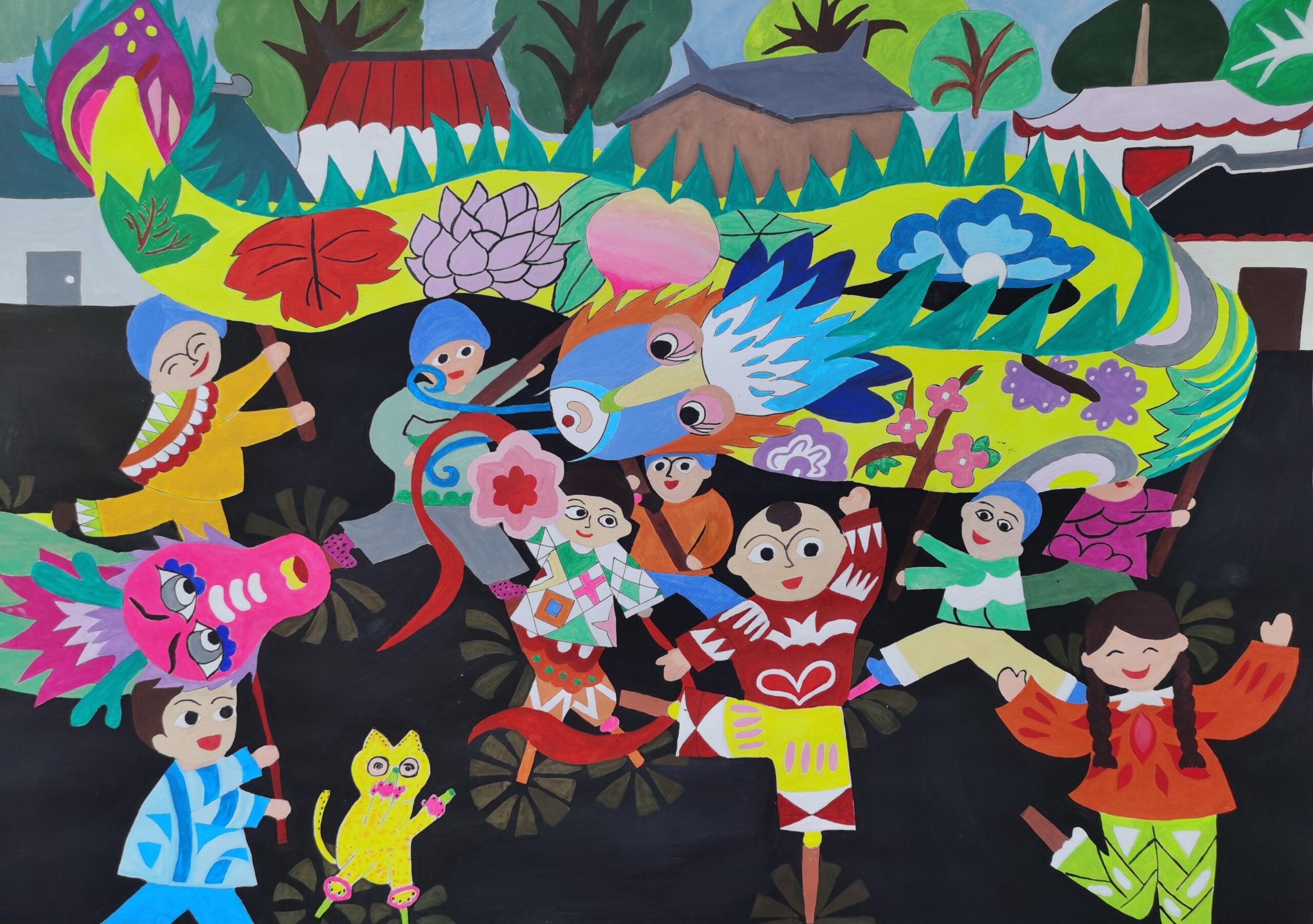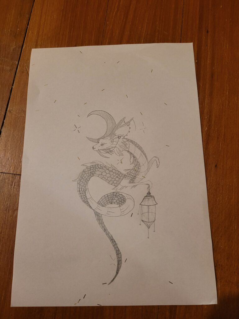 The above artwork captured on video was created by Liane Scholes, a KS2 young person in Manchester who created this piece to the theme of the ‘Year of the Snake’.