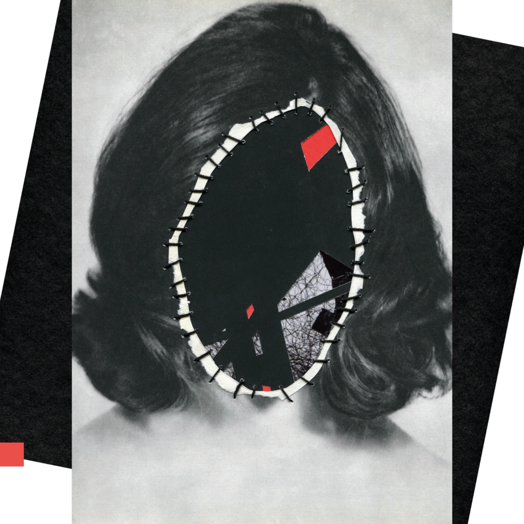 “In reference to the three poems on display here alluding to the theme “Threads”, I created a monochrome portrait using analog mixed-media collage technique, which was later digitised. Thanks to the physical act of sewing a paper element in place of the head, the viewer peeks inside, where they can see fibres being exposed, where layers are scratched away – layers symbolising matter, thoughts, the internal world of an individual – completely different for every person. The red contrasting elements can symbolise important events, situations or traumas from the past. They can also become an apocalyptic vision of the future and questions about the existence of the soul.”
